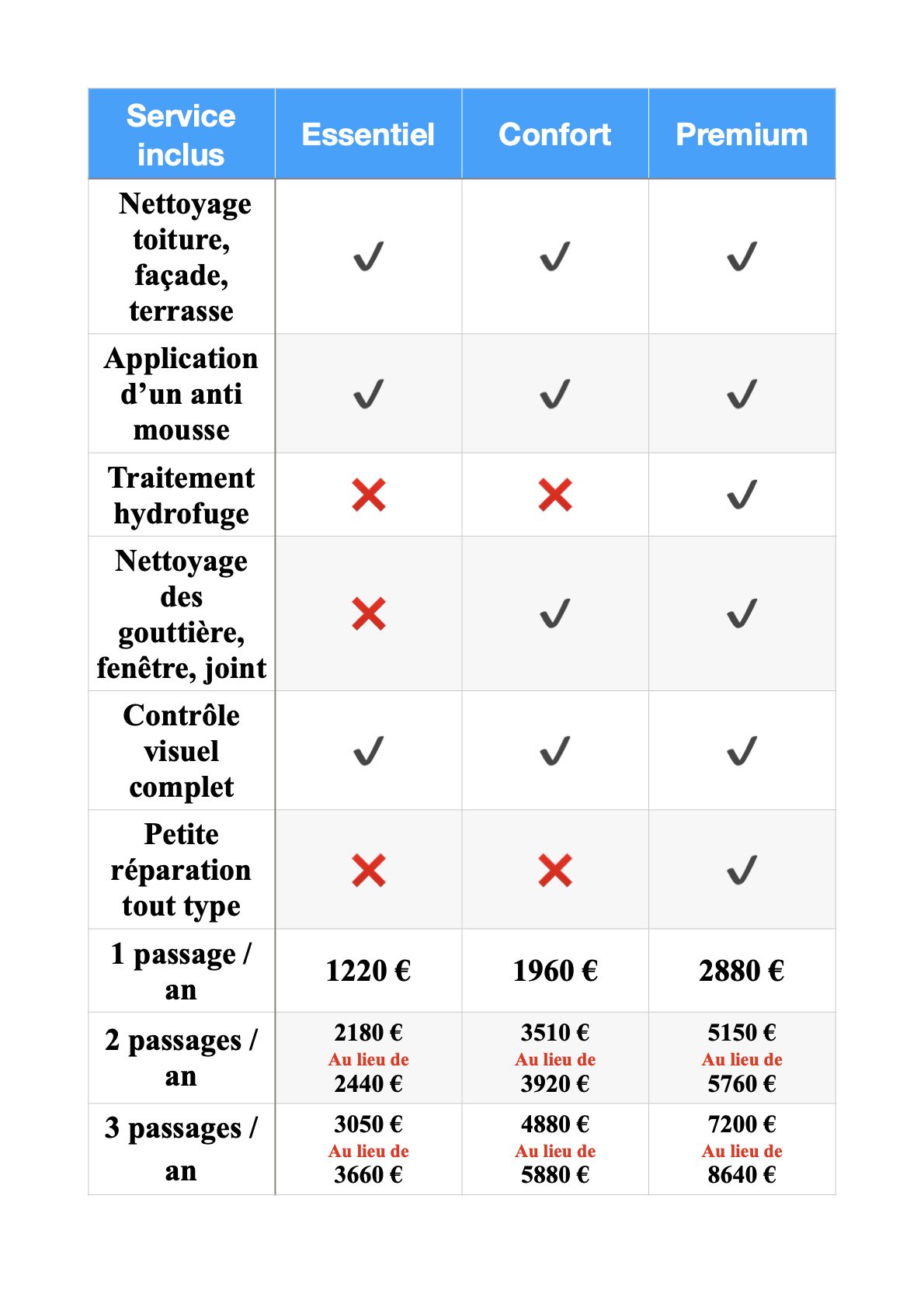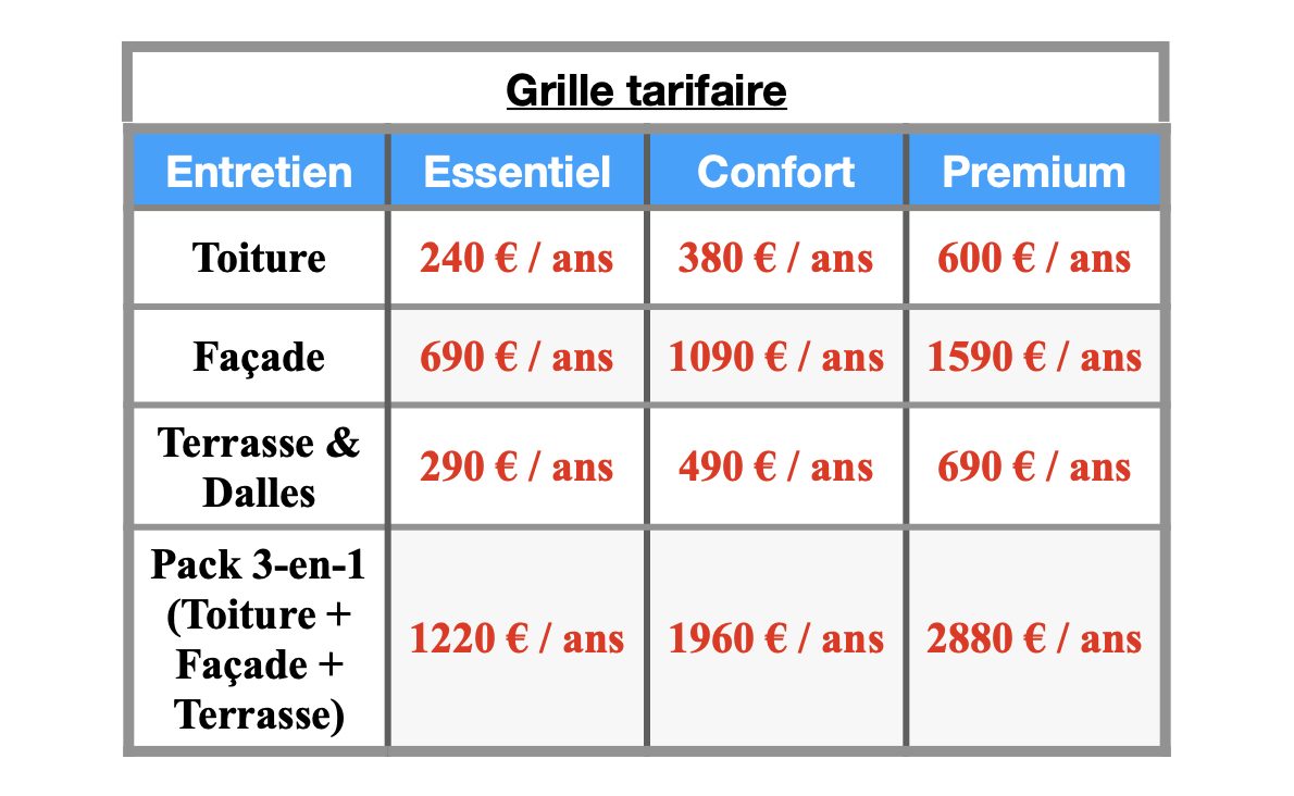 Chaque formule reste entièrement modulable : vous pouvez combiner toiture, façade et terrasse comme vous le souhaitez afin de créer un contrat parfaitement adapté à vos besoins et à votre budget.