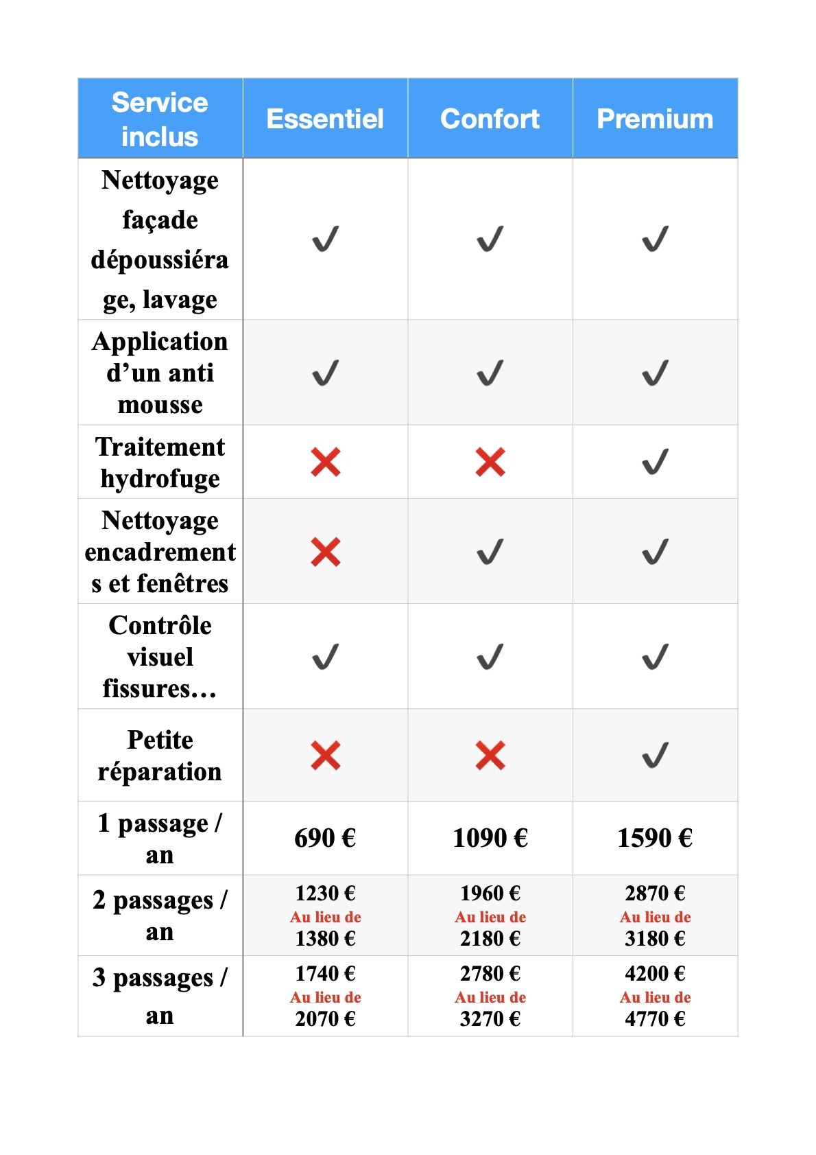 En choisissant un contrat annuel d’entretien de façade, vous profitez de murs impeccables toute l’année, tout en évitant les réparations lourdes et coûteuses.